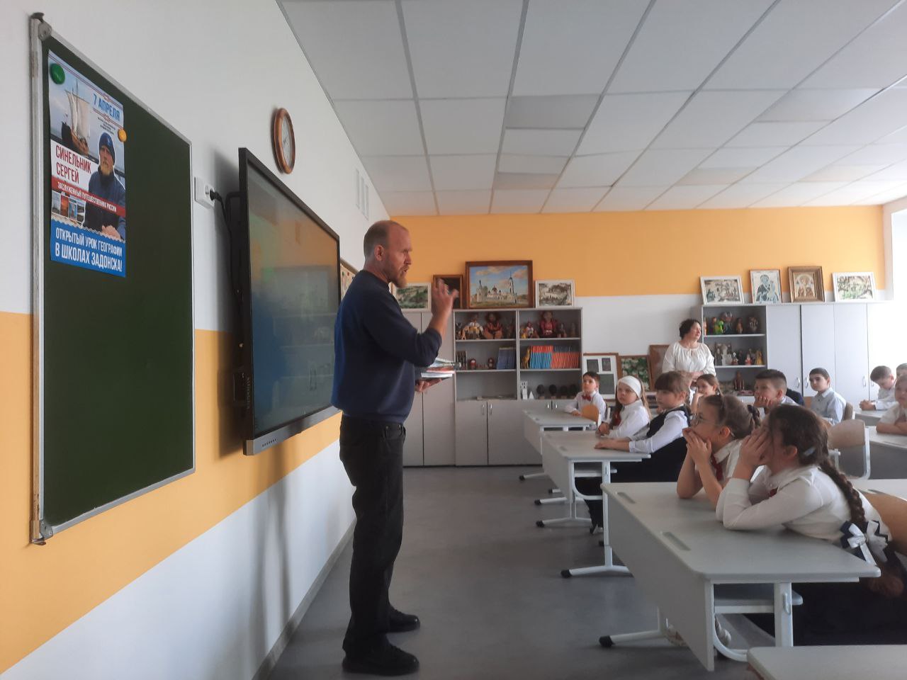 Заслуженный путешественник и член ПКО РГО – ОИАК Сергей Синельник прошел свой первый почтовый маршрут в Задонске - столице филатуризма, провел открытый урок географии, открыл выставку и провел церемонию спецгашения