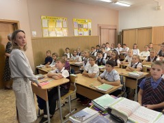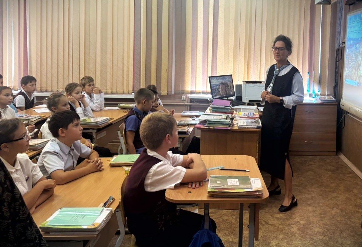 30 сентября 2025 года в рамках «Разговора о важном» «Паруса» посетили школу №25 имени Героя России Алексея Леонидовича Рыбака во Владивостоке. Руководителя студии Эльвиру Васильевну Кочеткову встретила на проходной Елена Игоревна Шкарина – учитель начальных классов, учитель Православной культуры в четвёртых классах, преподаватель дополнительного образования.
