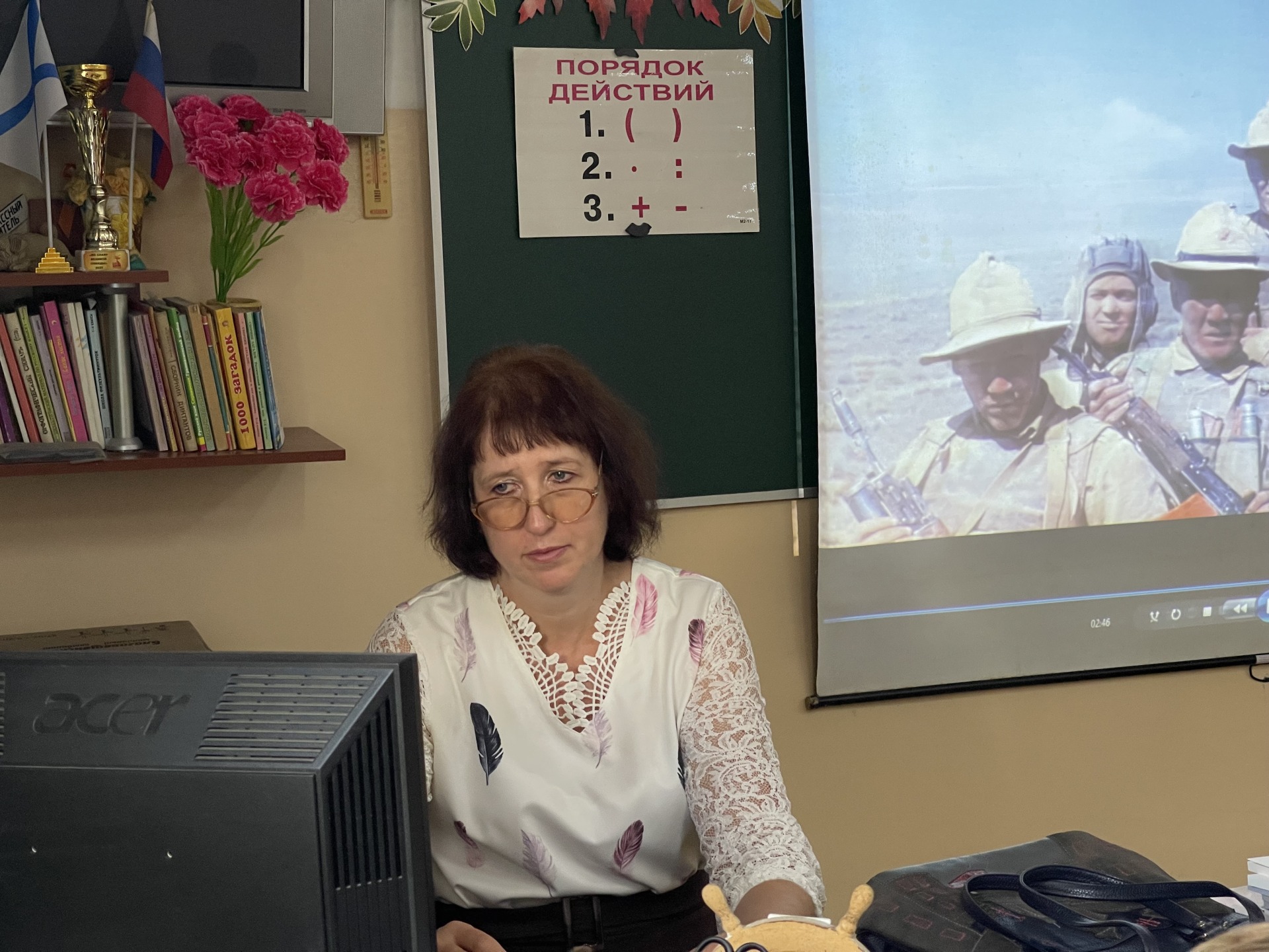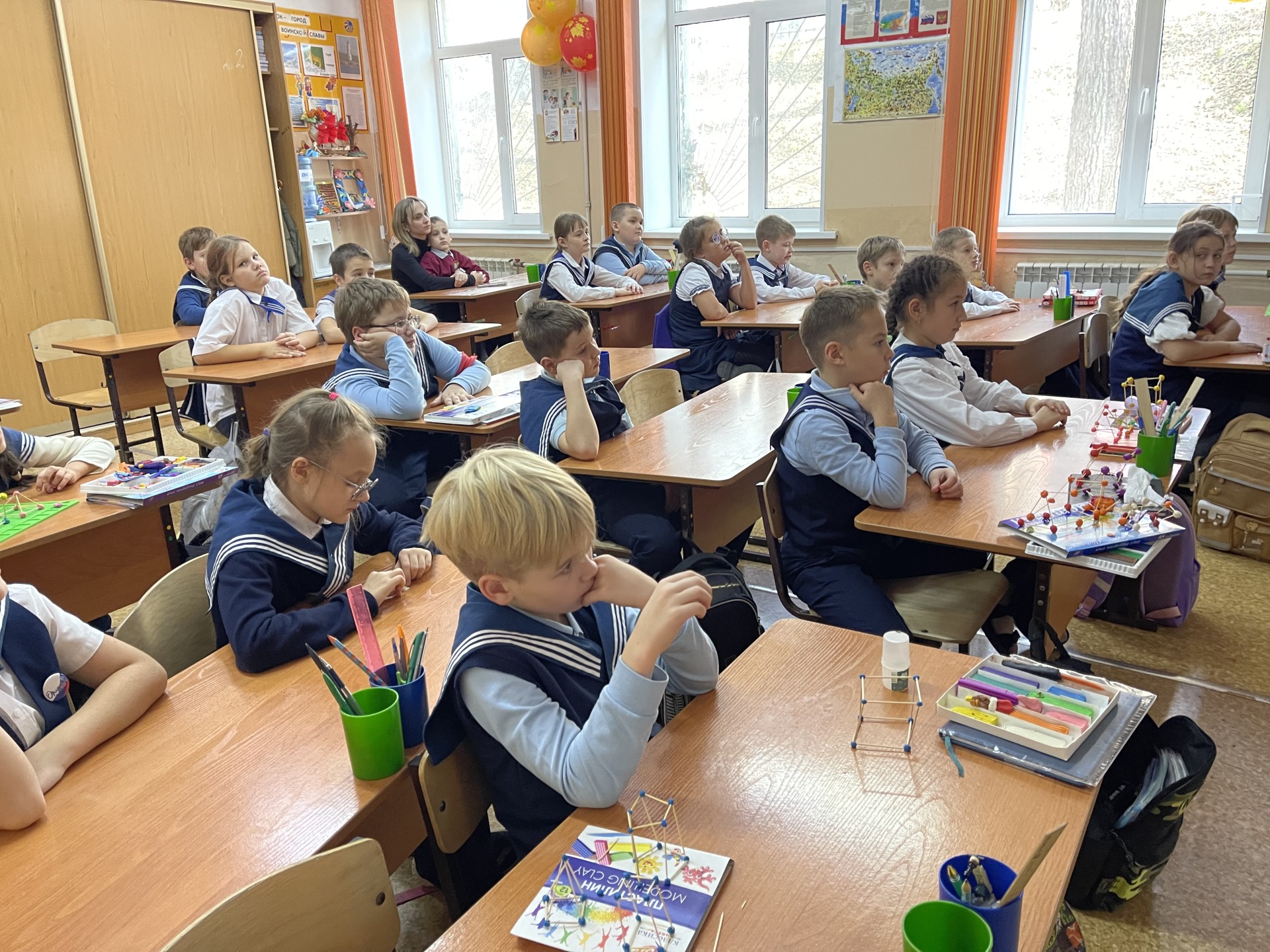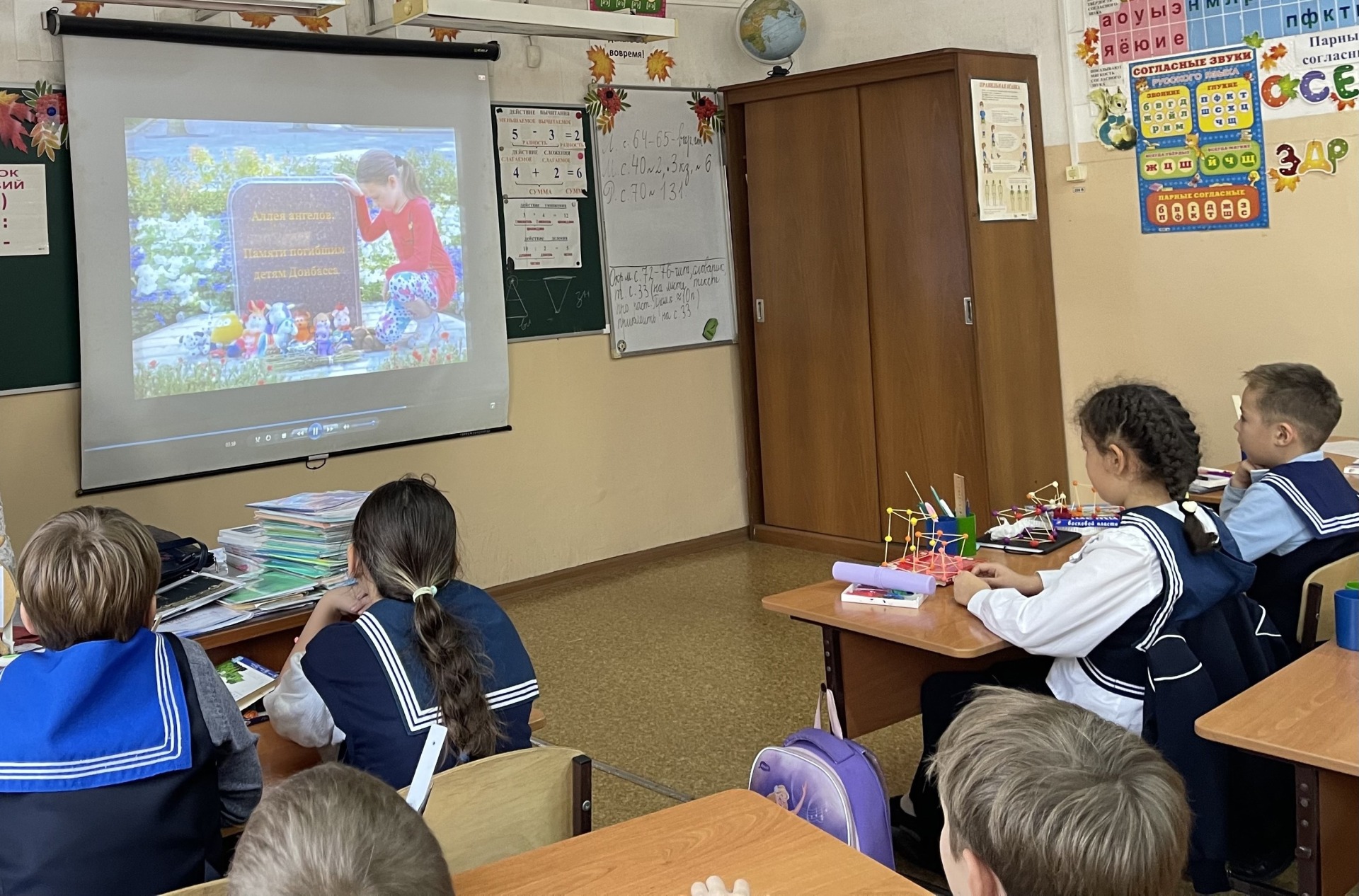 Следующую встречу в этом году, сентябрьскую, мы запланировали с Еленой заранее. Два четвёртых класса на этот раз разместились в классной комнате, с доступной видеотехникой и экраном, с более торжественной для нашего случая атмосферой.