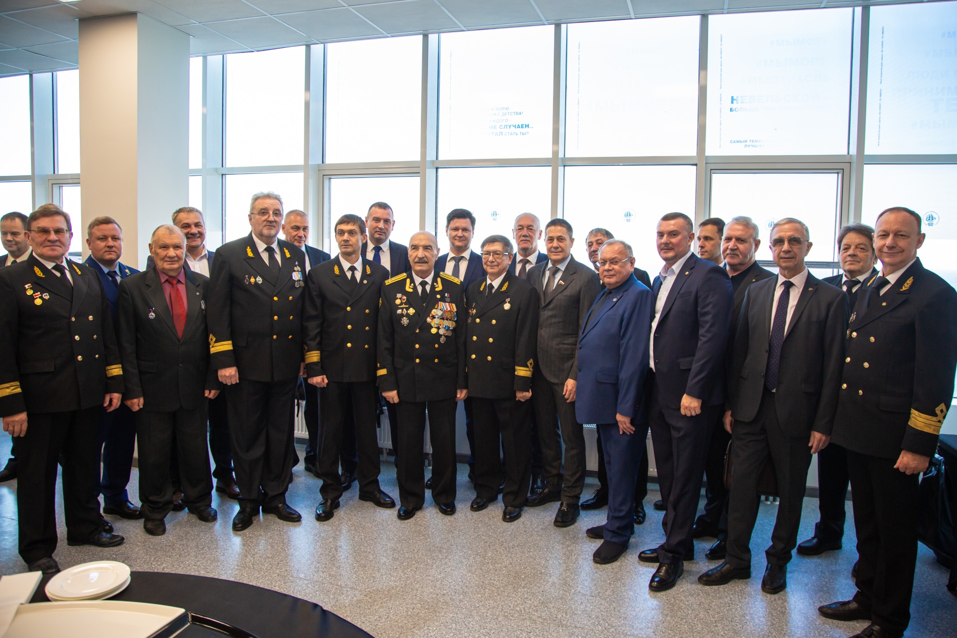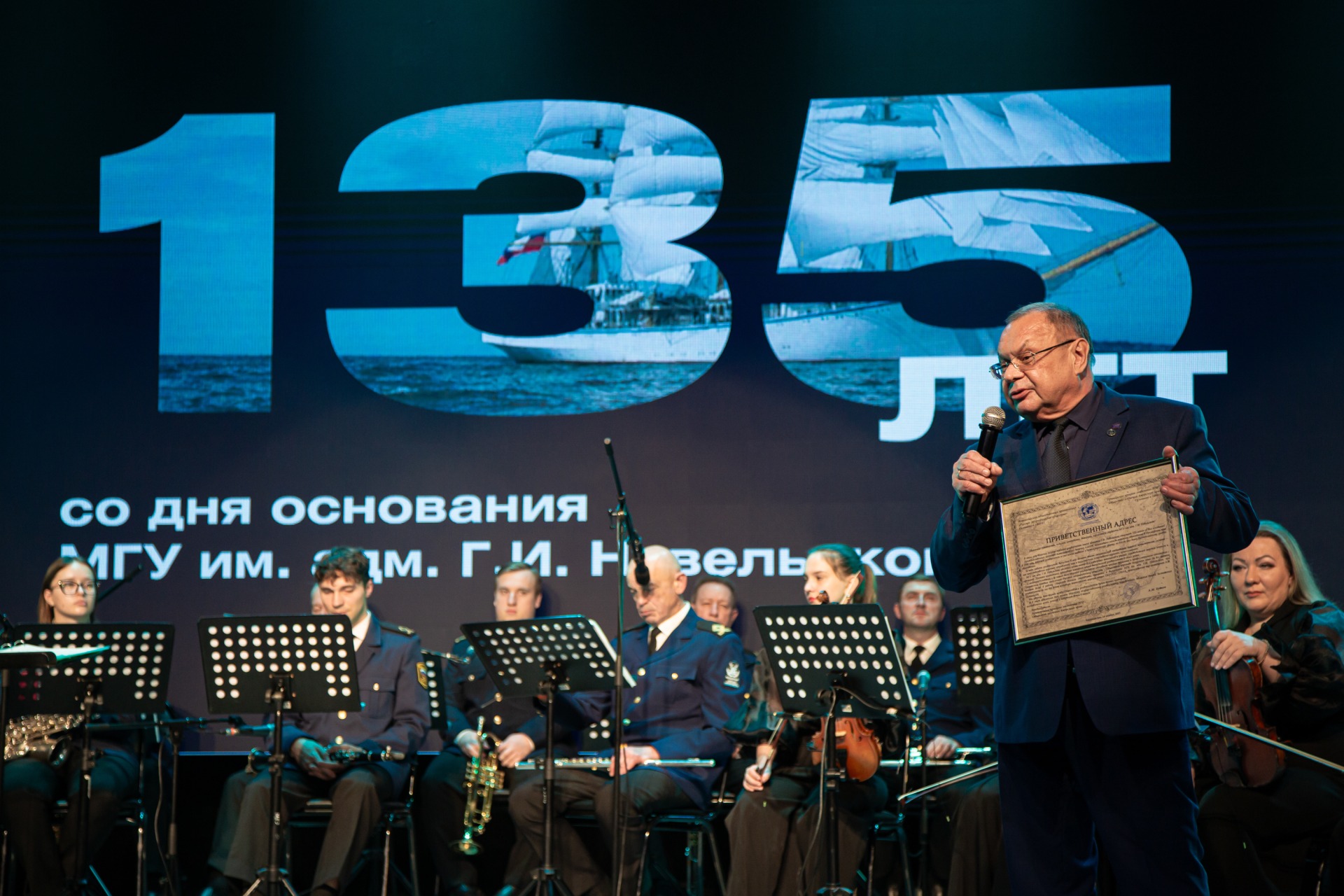 В концертном зале Тренажёрного центра МГУ им. адм. Г.И. Невельского собрались курсанты и сотрудники университета, выпускники разных лет, представители Администрации города и края, Думы, Законодательного собрания, руководители и сотрудники профильных морских организаций, представители университетов города Владивостока. Со сцены звучало множество тёплых слов, многие из почётных гостей когда-то сами были курсантами или сотрудниками легендарной «бурсы».