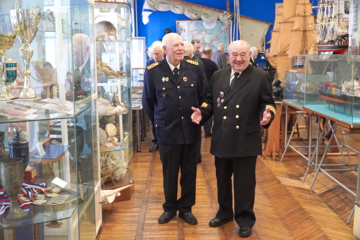 В завершение гости вернисажа посетили выставку «Фалеристика в жизни капитана Лескова» в музее университета, где представлена коллекция значков известного капитана Михаила Михайловича Лескова, переданная им в Морской университет. Выставка посвящена памяти капитана и оформлена для музея А.И. Богданом.