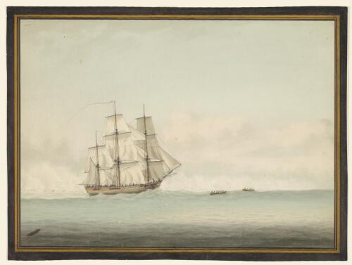 Картина корабля “Endeavour у побережья Австралии” (Samuel Atkins, ca. 1790)