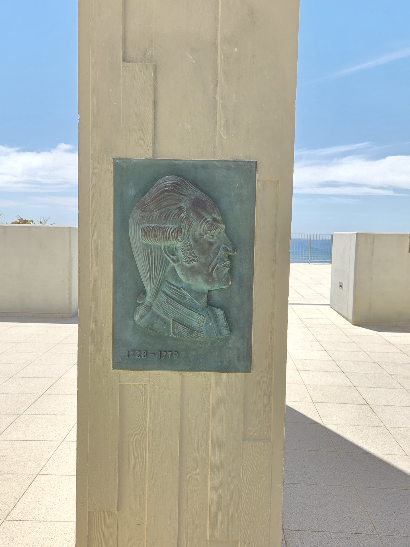 Мы поднимаемся по широким ступеням, проходим между колонн и здороваемся с капитаном Куком, а точнее с его барельефом.