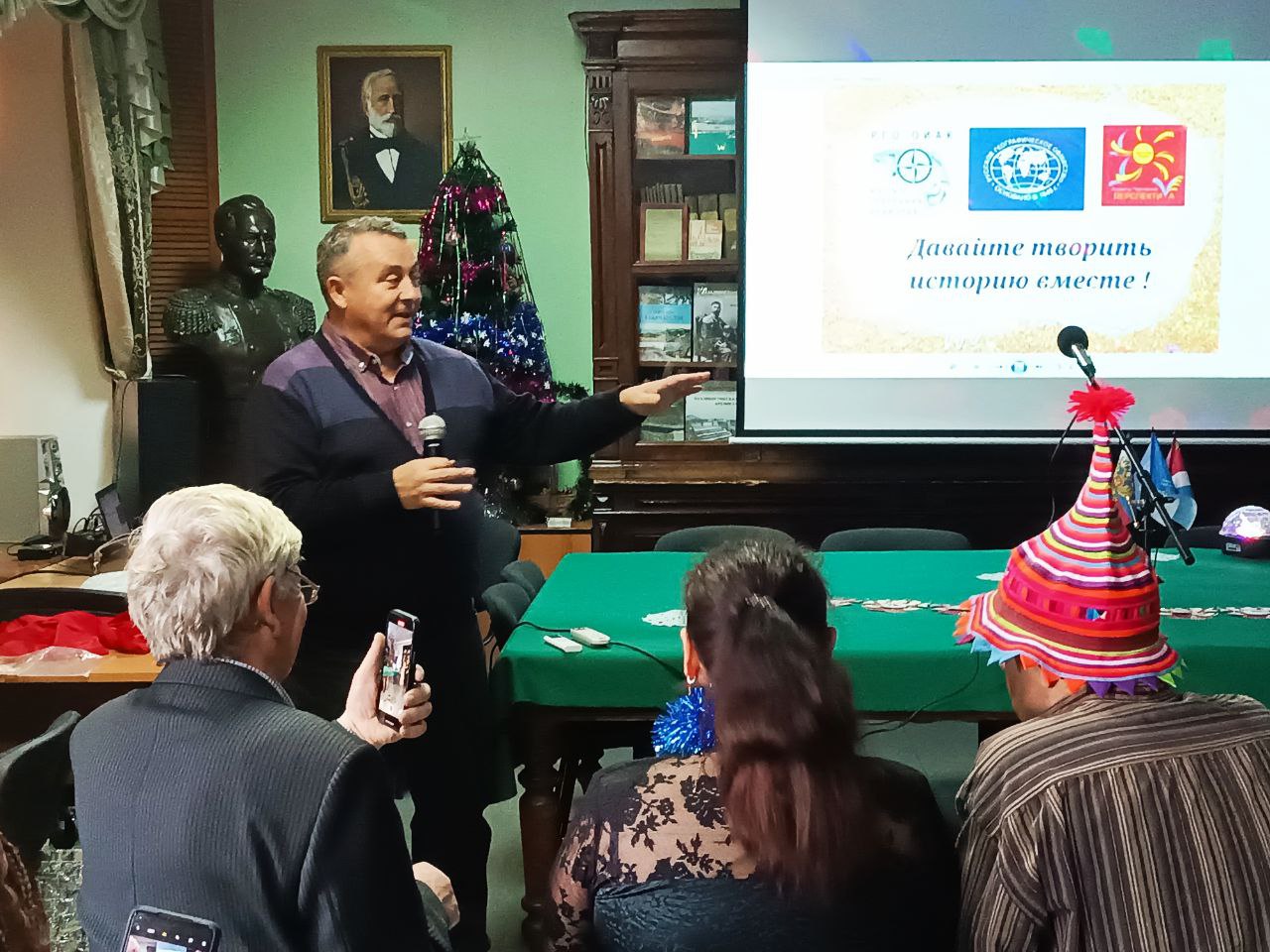 Открыл программу Охрименко Евгений Николаевич. Он рассказал гостям об истории создании Общества изучения Амурского края, о его основателе Фёдоре Федоровиче Буссе, и проходящих в стенах конференц-зала библиотеки, интересных встречах и лекциях.