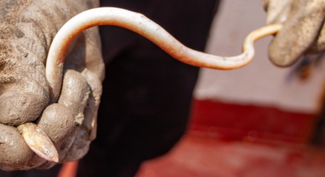 Водяная змея, пойманная в телегрейфер и отпущенная на волю.