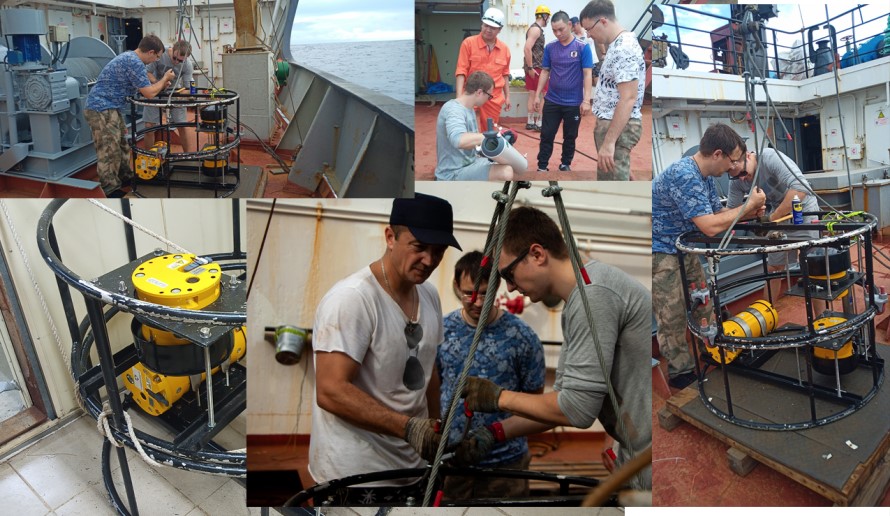 - Выполнение CTD-зондирования комплексных океанологических измерений для исследования формирования структуры полей гидрологических характеристик, построение высокоразрешающих вертикальных профилей температуры, солёности, мутности, растворенного кислорода, определение водных масс, построение карт вертикальной циркуляции, изучение структуры основных течений привьетнамской части Южно-Китайского моря.