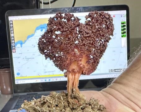 - Поднят многочисленный твердый каменный и литифицированный (возможно, алевролиты и песчаники) осадочный материал, который представлен обломками пород разной окатанности и различного состава, обломками трубчатых и коркообразных образований, а также образований неправильной формы. Получены образцы предположительно пикрокластических пород, также образований с железо-марганцевой минерализацией.