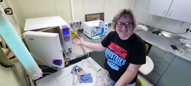 к.б.н. А.Л. Пономарева в судовой микробиологической лаборатории
