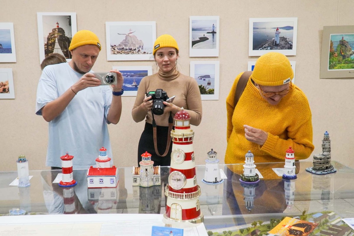 Удачно дополнили выставку сувенирные фигурки маяков, предоставленные на вернисаж сотрудником ФЭУ Еленой Горобец. Неожиданно для организаторов выставки Елена оказалась участником социального проекта «Маяк Приморья», посетившей 24 маяка проекта и собравшей все награды финалиста. Изображения маяков на выставке можно увидеть также в поделках курсантов с УПС «Профессор Хлюстин», оставлявших после пройденной практики подарки судну. Начало этой хорошей традиции положил учебный помощник, член РГО Роман Колесник. Сегодня эти подарки переданы музею.