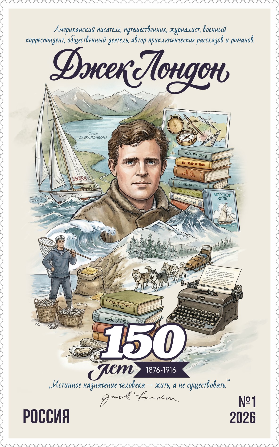 В честь 150-летия великого американского писателя Джека Лондона вышел в свет почтовый выпуск в серии «Почта путешественника» и «Литературная почта»