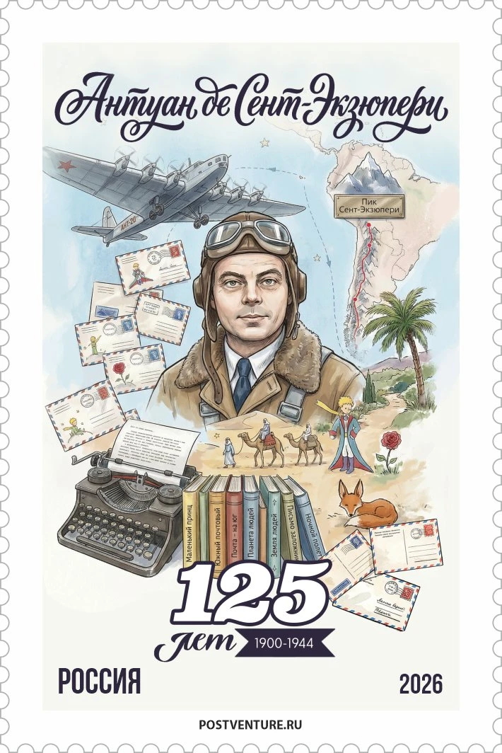 Почтовый выпуск в честь великого французского писателя Антуана де Сент-Экзюпери, включающий в себя почтовые конверт, карточку, картмаксимум и марки-виньетки (одна марка бумажная, а другая создана из холста, имеющая персонализированную нумерацию, начиная от №1 и до №100), представленными «Литературной почтой» и «Почтой путешественника», можно заказать по контактам Всероссийского проекта развития филатуризма «POSTVENTURE & Почтовое приключение»: E-mail: info@postventure.ru или по тел./WhatsApp: +7-950-805-22-11