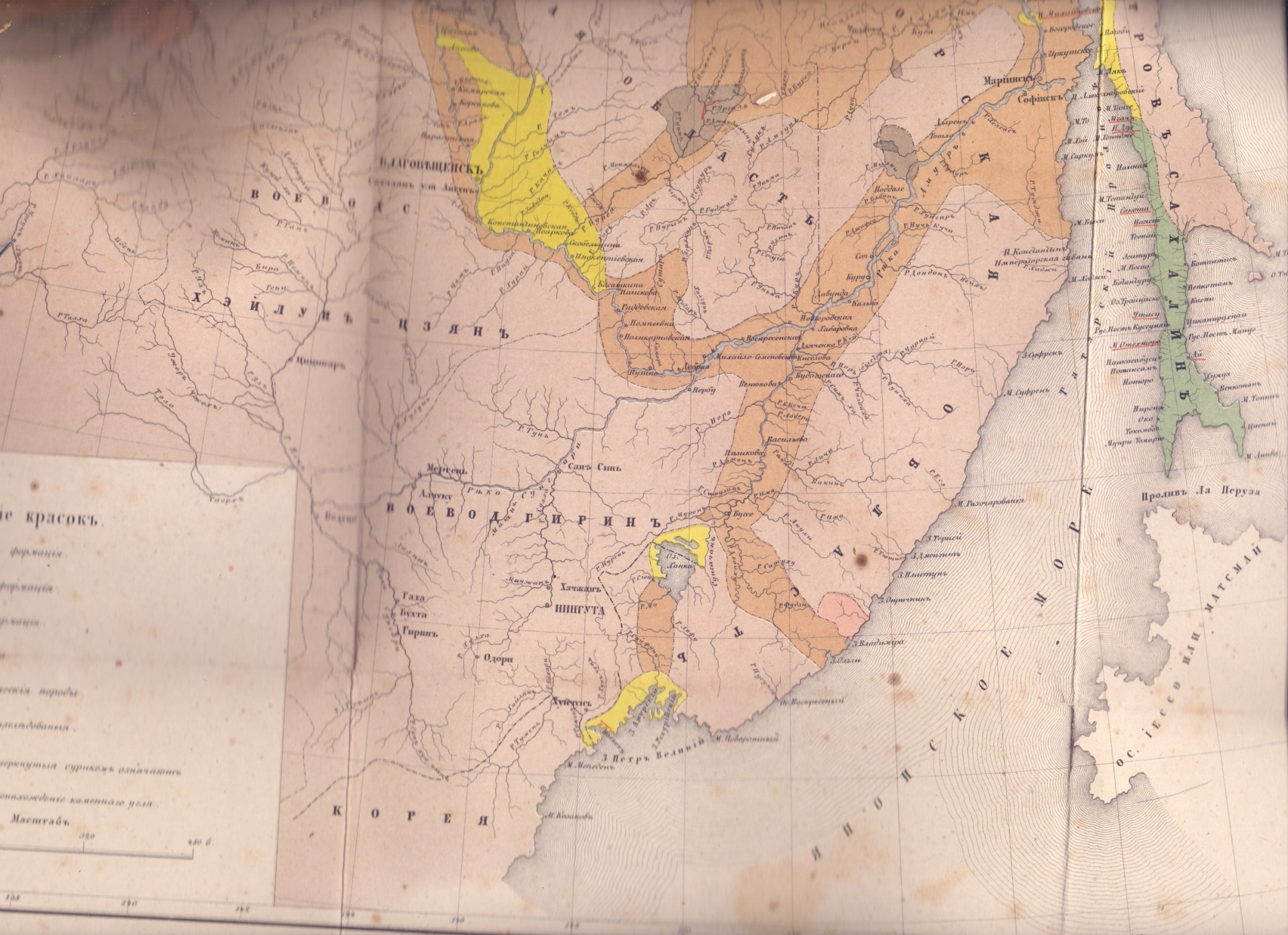 В середине весны дождался Шмидт разрешения на продолжение экспедиции, а 23 мая 1861 г. пароходо-корвет «Америка» отправилась в рейс. По пути в Приморье она должна была зайти на Сахалин, где Шмидт надеялся выгрузить продовольствие, которое он захватил из Николаевска для своей экспедиции, которая взяла курс во Владивосток. Этот небольшой пост только что отметил свою первую годовщину, Шмидт мог бы и не обратить внимания, если бы не майор Николай Николаевич Хитрово, увлекший его рассказами о богатых запасах угля в этом, районе. Но пробы, которые Хитрово показал геологу, впечатления па него не произвели: Шмидт сомневался в значительности этих месторождений.