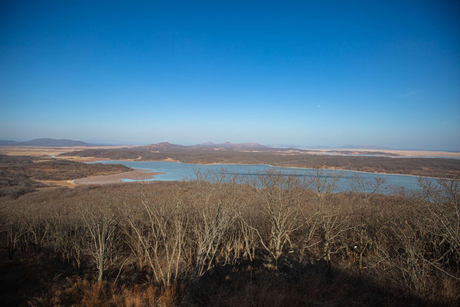 Участники экспедиции оценили благоустройство сопки Заозёрная: новая лестница, несколько площадок и видовая площадка на вершине, откуда открывается вид на реку Туманная (Туманган, Тумэнь), на приграничный китайский Фуюань с Башней тигра и дракона и будущим музеем Победы, Мост дружбы — связующая нить между Россией и КНДР.
