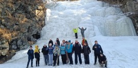Следуя вот таким простым правилам, ученики 5-го класса школы №71 п. Трудовое 13–го марта, в пятницу, совершили смелый поход в это экзотическое место. Во время поездки ребята увидели, как из весны можно попасть обратно в зиму: не в студёную, но снежную. Дети удивились огромным каскадам гладкого льда, базальтовым «карандашам» и речным порогам.