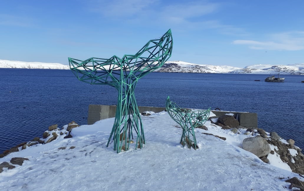 Находясь в Териберке, ни на минуту не удается забыть «про китов». Это одна из самых актуальных тем. Во-первых, многие турфирмы организуются сюда поездки ради выхода в море и встречи (если повезет) с этими исполинами в их естественной среде обитания. Во-вторых, история села знает, что в былые времена здесь ловили не только треску и пикшу. В-третьих, при въезде в Териберку вас встречает огромная буква Т, красиво подсвеченная в темное время, напоминающая о названии села и похожая на хвост морского млекопитающего. Такого снимка в домашнем фотоархиве не нашлось, но прочих – с изображением хвостовых плавников обитателей глубин – оказалось предостаточно.