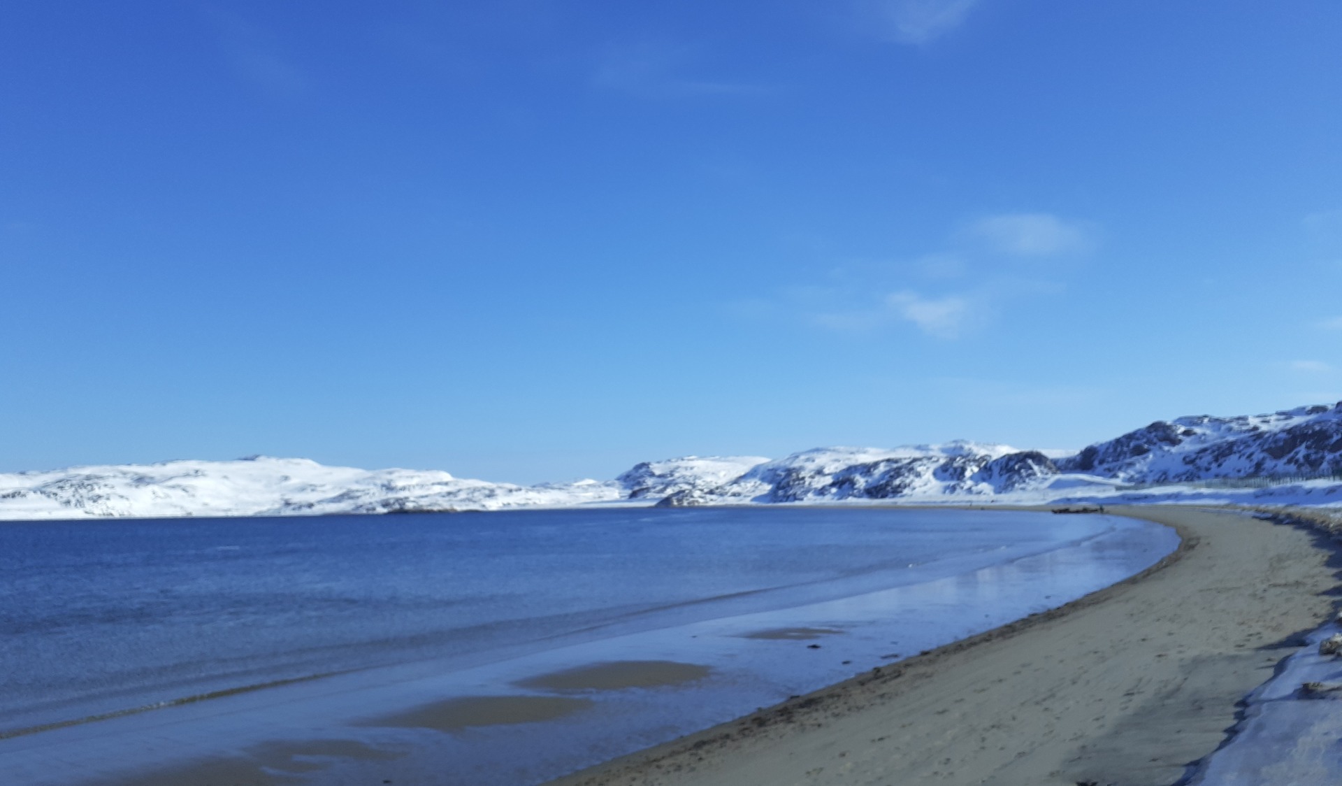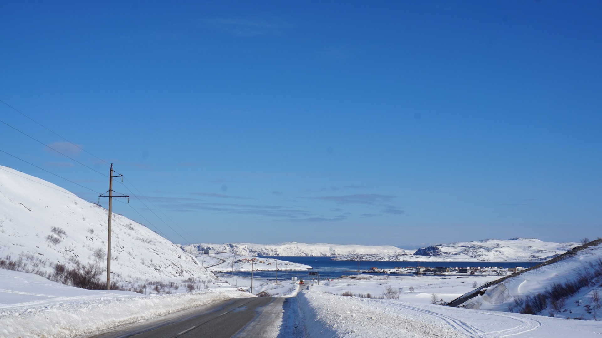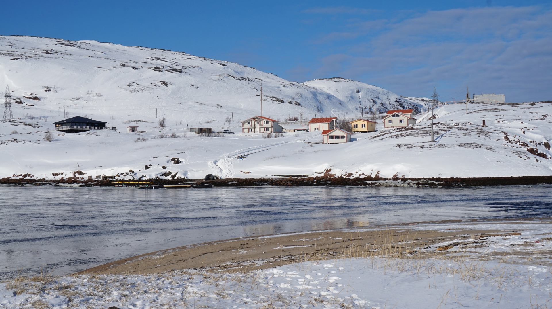 Так, задавая себе вопросы и отвечая на них, не заметили, как преодолели путь. Впереди показалась синяя полоска моря. Заснеженный берег заботливо укрывает невысокие строения. Здравствуй, Териберка!